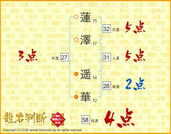 蓮澤遥華さんの総運は58画の4点!
