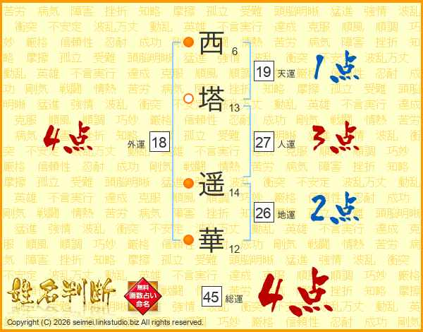 西塔遥華さんの総運は45画の4点!