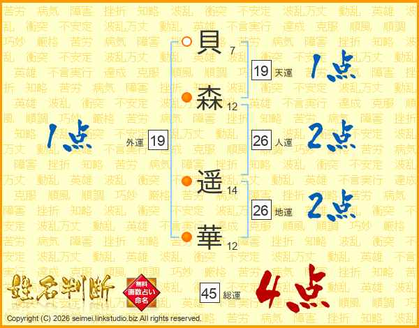 貝(7画)森(12画) 遥(14画)華(12画)