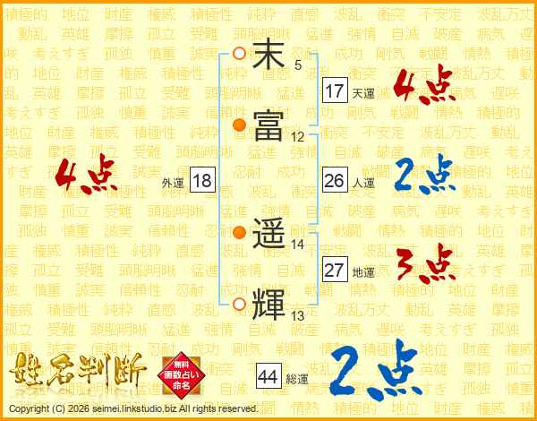 末富遥輝さんの総運は44画の2点!
