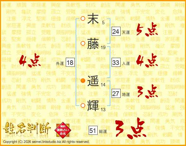 末藤遥輝さんの総運は51画の3点!