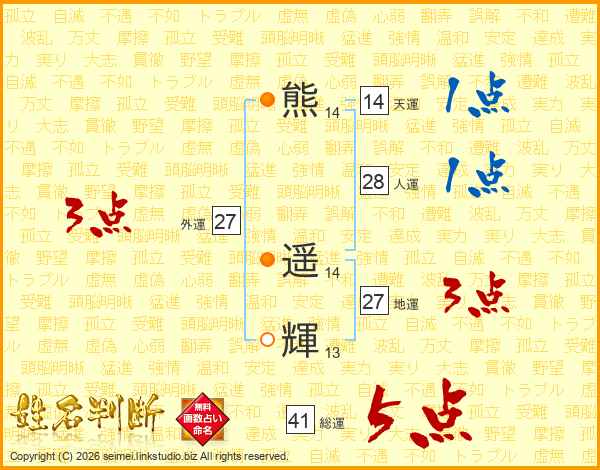 熊遥輝さんの総運は41画の5点!