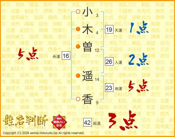 小木曽遥香さんの人運は26画の2点!