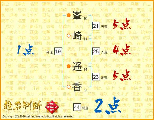 峯(10画)崎(11画) 遥(14画)香(9画)