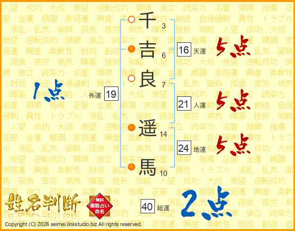 千吉良遥馬さんの天運は16画の5点!