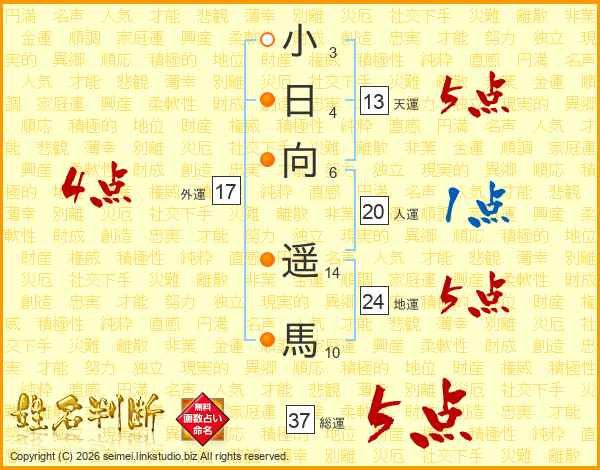 小(3画)日(4画)向(6画) 遥(14画)馬(10画)