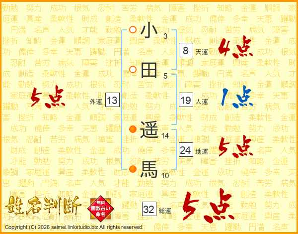 小田遥馬さんの総運は32画の5点!