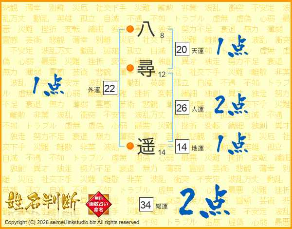 八尋遥さんの総運は34画の2点!