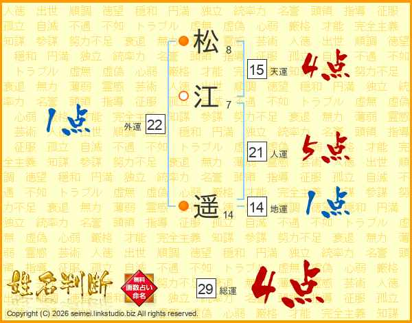 松江遥さんの総運は29画の4点!