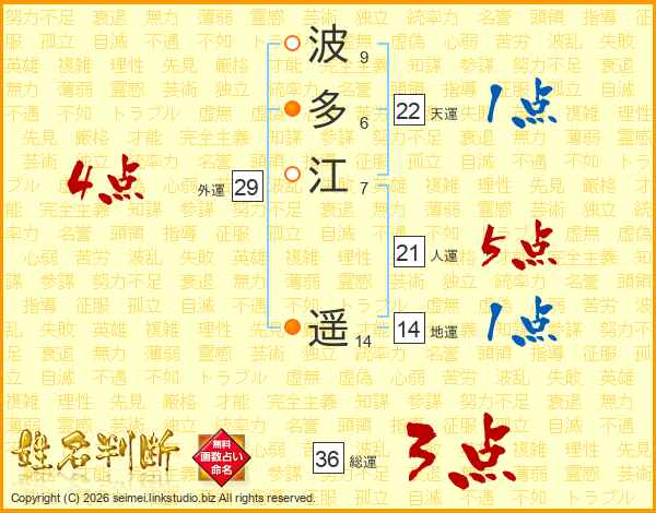 波多江遥さんの総運は36画の3点!