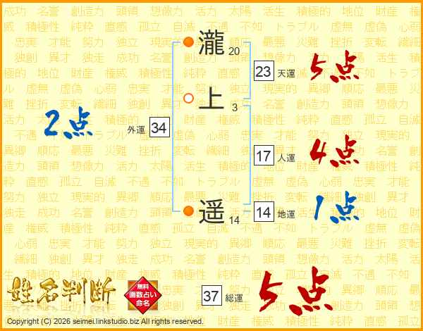 瀧上遥さんの総運は37画の5点!