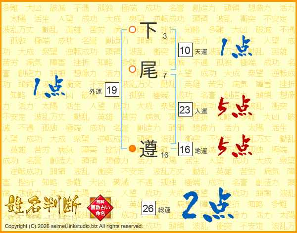 下尾遵さんの総運は26画の2点!