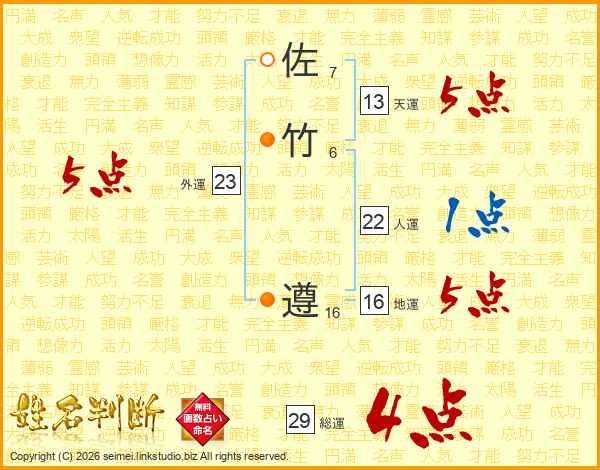 佐竹遵さんの天運は13画の5点!