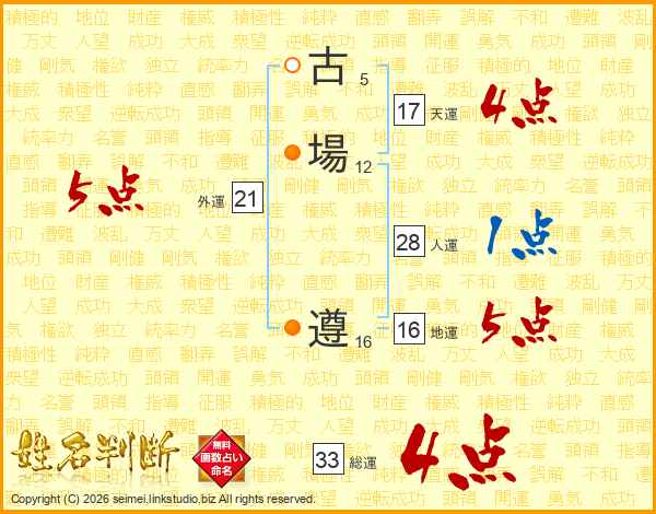 古場遵さんの総運は33画の4点!