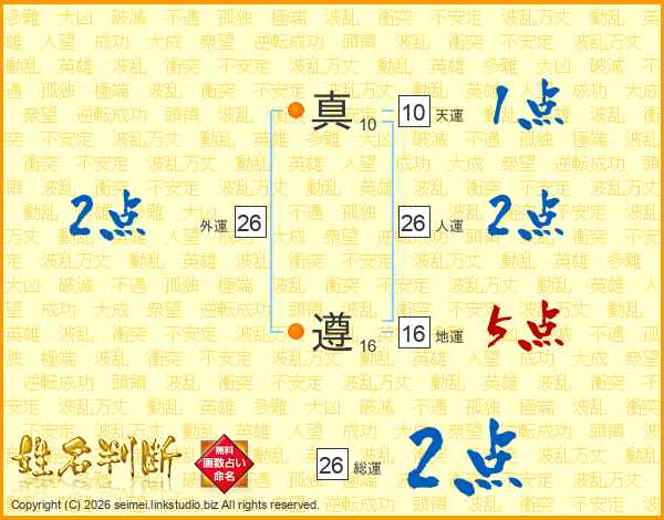 真遵さんの人運は26画の2点!