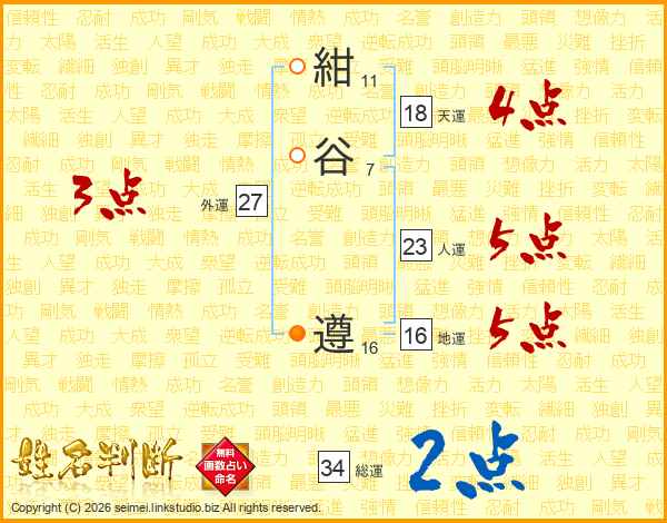 紺谷遵さんの天運は18画の4点!