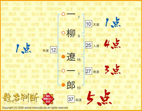 一柳遼一郎さんの総運は37画の5点!