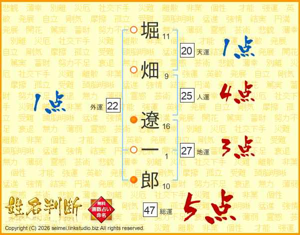 堀畑遼一郎さんの総運は47画の5点!