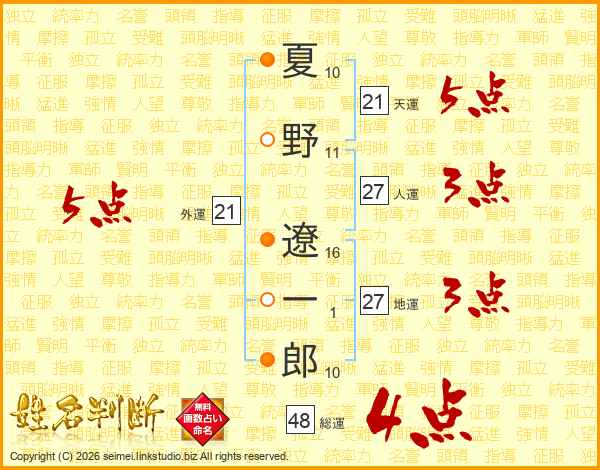 夏野遼一郎さんの総運は48画の4点!