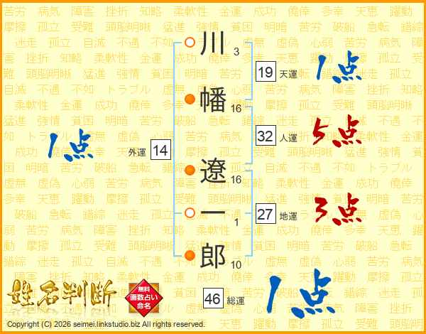 川幡遼一郎さんの総運は46画の1点!