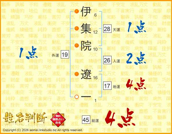 伊集院遼一さんの総運は45画の4点!