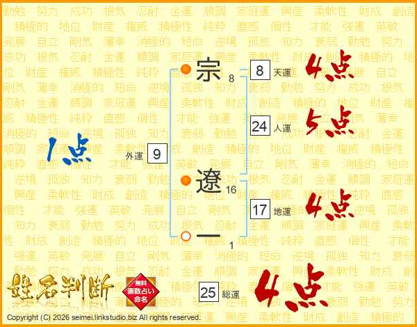 宗遼一さんの総運は25画の4点!