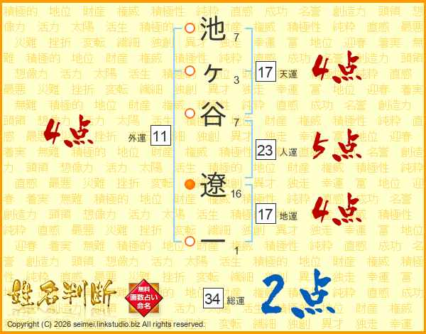 池ヶ谷遼一さんの総運は34画の2点!