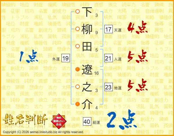 下柳田遼之介さんの総運は40画の2点!