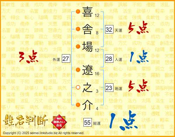 喜舎場遼之介さんの総運は55画の1点!