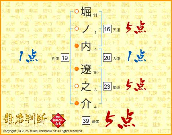 堀(11画)ノ(1画)内(4画) 遼(16画)之(3画)介(4画)