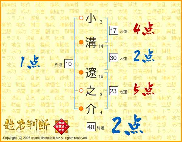 小溝遼之介さんの総運は40画の2点!
