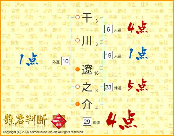 干(3画)川(3画) 遼(16画)之(3画)介(4画)