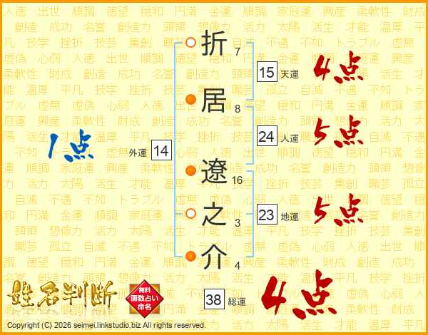 折居遼之介さんの総運は38画の4点!