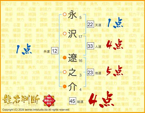 永(5画)沢(17画) 遼(16画)之(3画)介(4画)