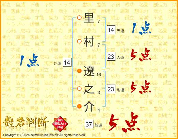 里(7画)村(7画) 遼(16画)之(3画)介(4画)