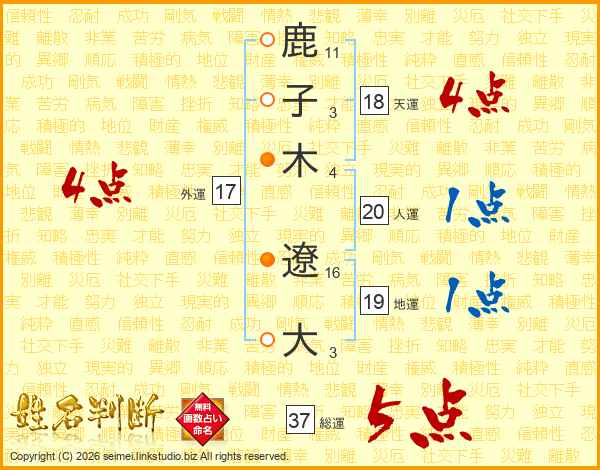 鹿子木遼大さんの総運は37画の5点!