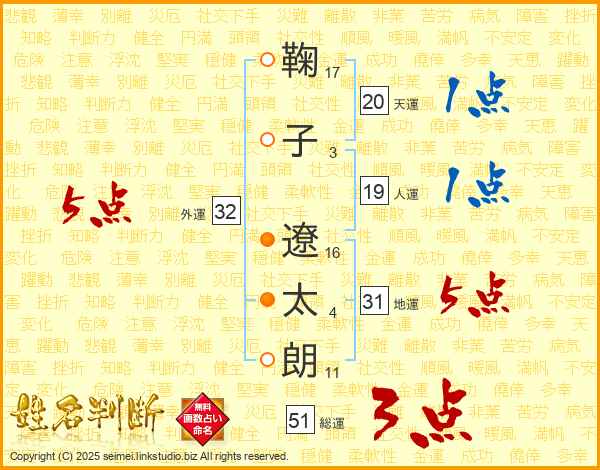 鞠子遼太朗さんの地運は31画の5点!