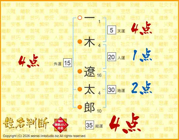 一木遼太郎さんの総運は35画の4点!