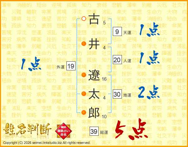 古井遼太郎さんの総運は39画の5点!