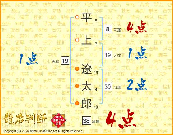 平上遼太郎さんの総運は38画の4点!