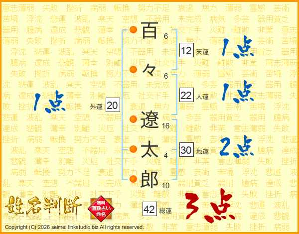 百々遼太郎さんの総運は42画の3点!