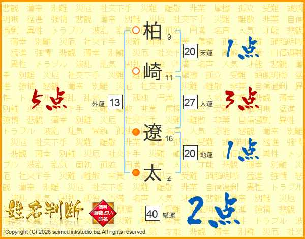 柏崎遼太さんの人運は27画の3点!