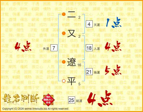 二又遼平さんの地運は21画の5点!