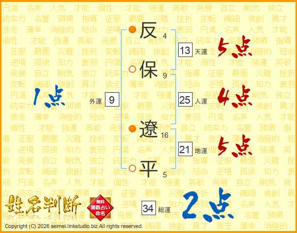 反保遼平さんの天運は13画の5点!
