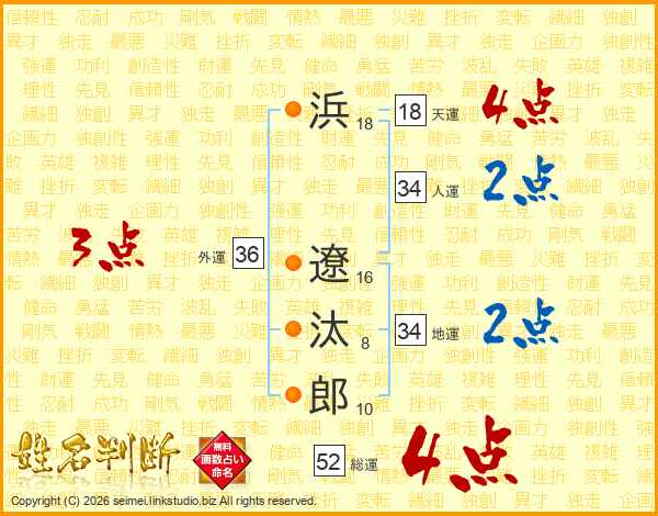 浜遼汰郎さんの総運は52画の4点!