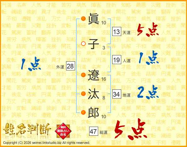 眞子遼汰郎さんの総運は47画の5点!