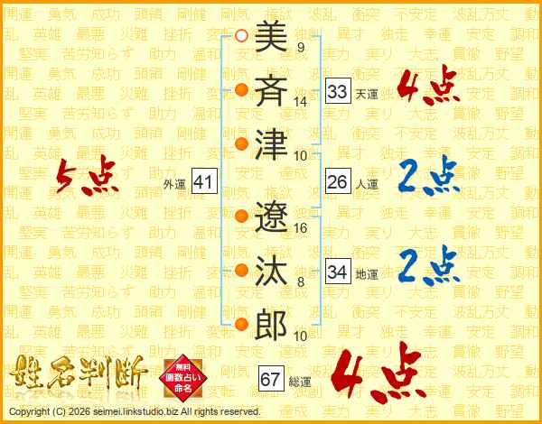 美斉津遼汰郎さんの天運は33画の4点!