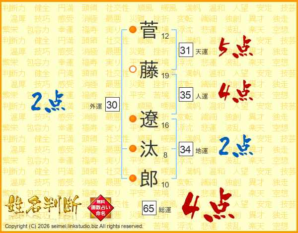 菅藤遼汰郎さんの総運は65画の4点!