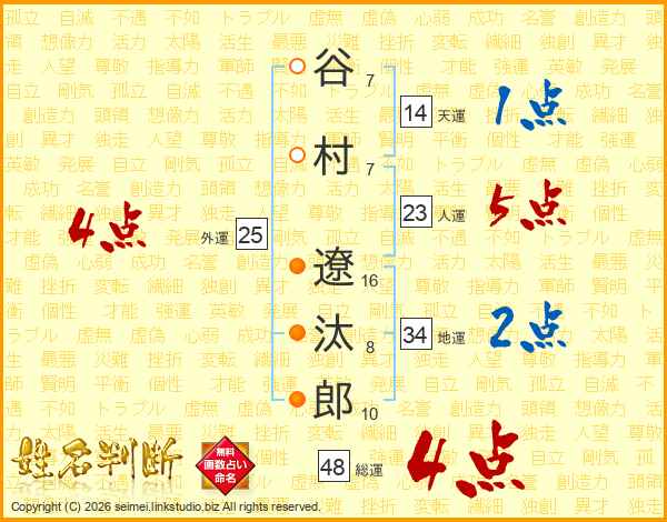 谷村遼汰郎さんの総運は48画の4点!