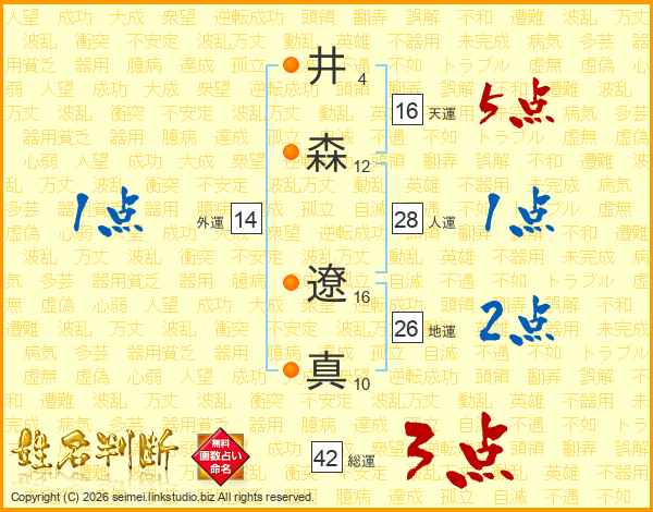 井森遼真さんの天運は16画の5点!